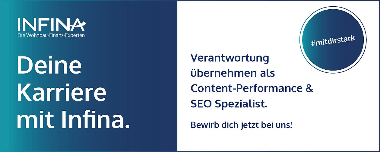 Infina ist mit Abstand das sichtbarste Unternehmen im Netz für das Thema Kredit in Österreich. Wir wollen diese Führungsrolle im Bereich SEO und AI-basierten Content weiter ausbauen. Du bist Spezialist für Online-Sichtbarkeit, technische Weiterentwicklung von Content-Strukturen und hast ein gutes Gespür für datengetriebenes Content-Marketing? Dann suchen wir genau Dich! Mit über 100 Standorten kennt man Infina seit vielen Jahren aus dem Bereich der Kreditvermittlung. Als Marktführer sind wir ein Beratungsunternehmen mit starkem Fokus auf persönliche Kreditberatung mit höchsten technologischen Ansprüchen und einer eigenen Kreditplattform. Zwischenzeitlich haben wir den Geschäftsbereich Immobilien hinzugenommen und sind auch hier auf Wachstumskurs.